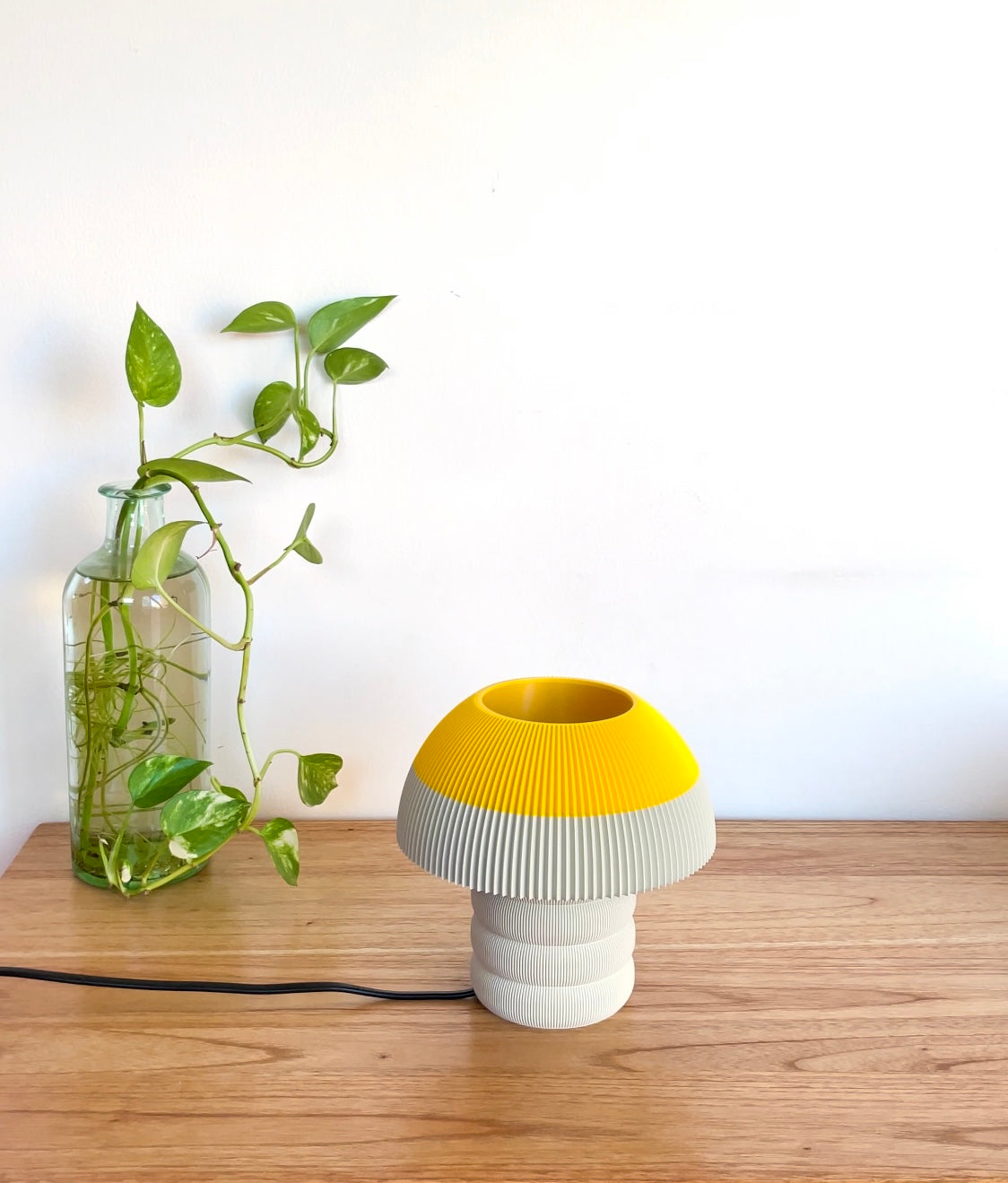 Mushi è una lampada stampata in 3D utilizzando il Pla, una bioplastica di origine naturale ottenuta dalla trasformazione degli zuccheri del mais.